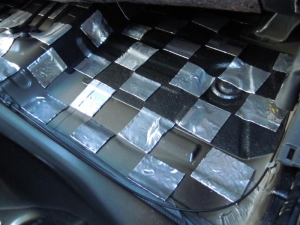 ノイサス制振シートを、全体の50%程度の割合になるように、足元部分には貼ります。
