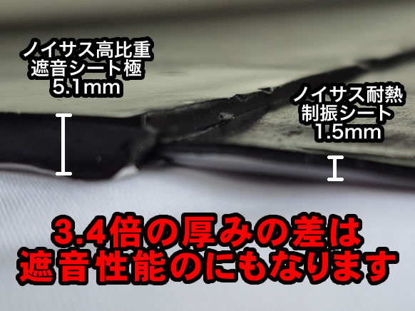 ノイサス耐熱制振シート1.5mm厚と比べても、厚みの違いは明白です。